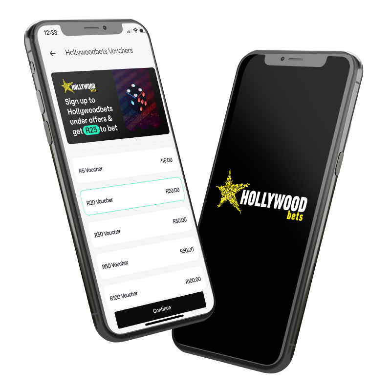 • Tap Hollywoodbets & select the voucher you’d like to buy, and tap Continue.