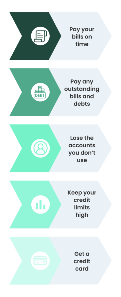 Make sure you don’t max out your credit card and pay back what you owe on time. It’s also a good idea to limit the amount of credit you access on your card to no more than 30% of the total amount.