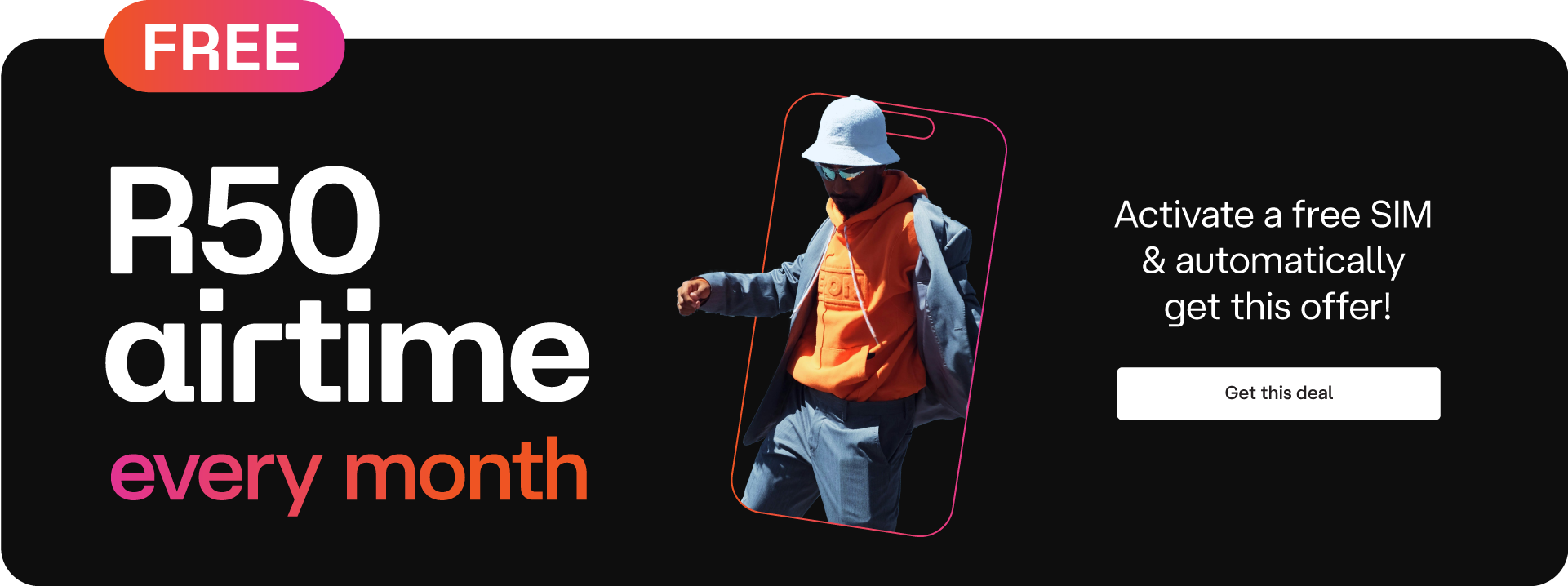 Yes, it's completely free! No strings attached. Simply order your SIM, select the R50 FREE pm option and collect from any Clicks store nationwide, or install a FREE eSIM in minutes!